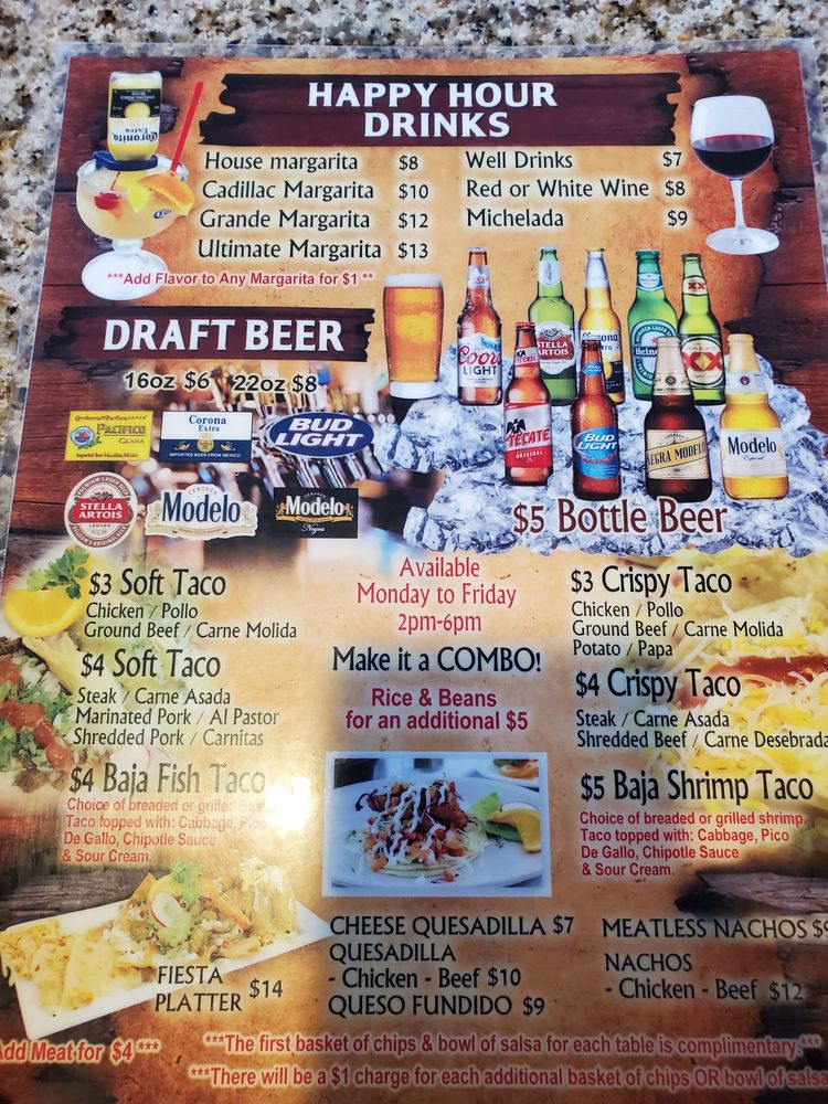 “ Nice place I enjoy the food here the service was quite fast. I loved the tampiqueña plate was very tastyyyy. They have alot of alcoholic options here lots of mixed drinks and they are strong and tasty definitely great place gir happy hour time and to get a nice drink ”
